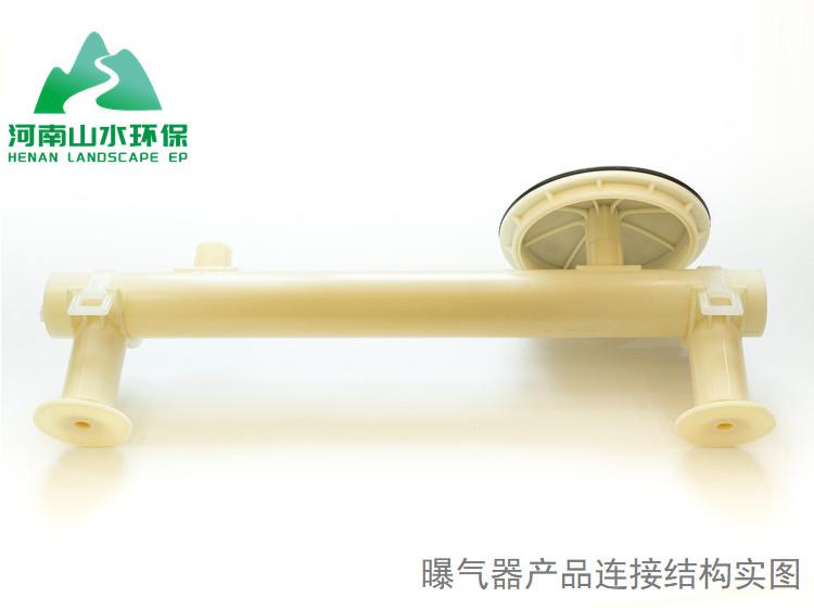 微孔曝氣器按供氣量和池形布置密度,曝氣器和布氣管道采用G3/4螺紋連接,底座為內螺紋(固定于布氣管道上),曝氣器為外螺紋。安裝時,先把調節器所需尺寸固定于池底,然后用抱箍把布氣管道固定在調節器上。